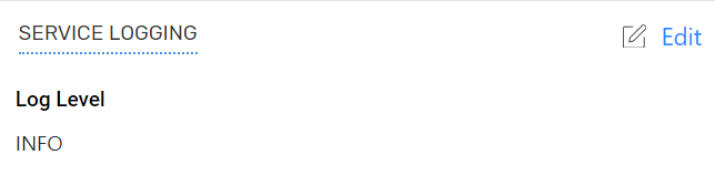 The Service Logging page allows to configure the log options at three levels such as INFO, DEBUG, and ERROR. The logs can be downloaded and collected from the Microservice logs page (Troubleshooting > Microservice logs) for troubleshooting encountered issues. Irrespective of the level the collected logs include all information about microservices.